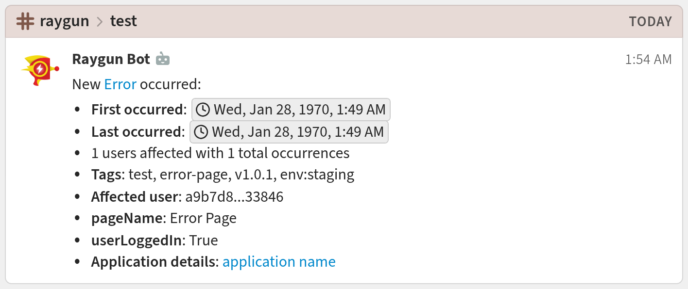 You're done! Your Raygun notifications may look like this:
